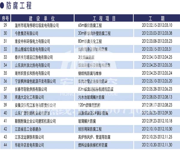 宏順建設(shè)工程有限公司是國(guó)家批準(zhǔn)成立的專業(yè)高空作業(yè)企業(yè):承攬過(guò)(國(guó)內(nèi).國(guó)外)煙囪新建、煙囪防腐、磚煙囪新建、煙囪改造、煙囪維修、煙囪脫硫防腐、煙囪拆除加高、煙囪滑膜等高空作業(yè)工程。具有“不搭腳手架 、 不需要停產(chǎn)”施工特點(diǎn)。